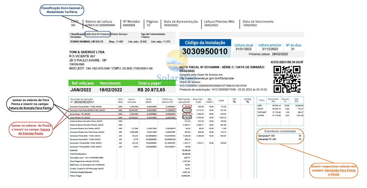 Siga as instruções abaixo para identificar as informações necessárias na sua conta de energia para utilizar o simulador solar.